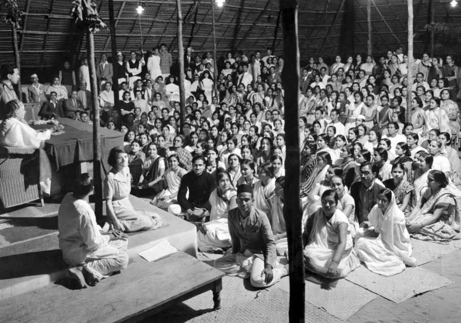 Photograph documenting lectures from the first Montessori teacher training course held in India, conducted at the Theosophical Society headquarters in Adyar in 1939.