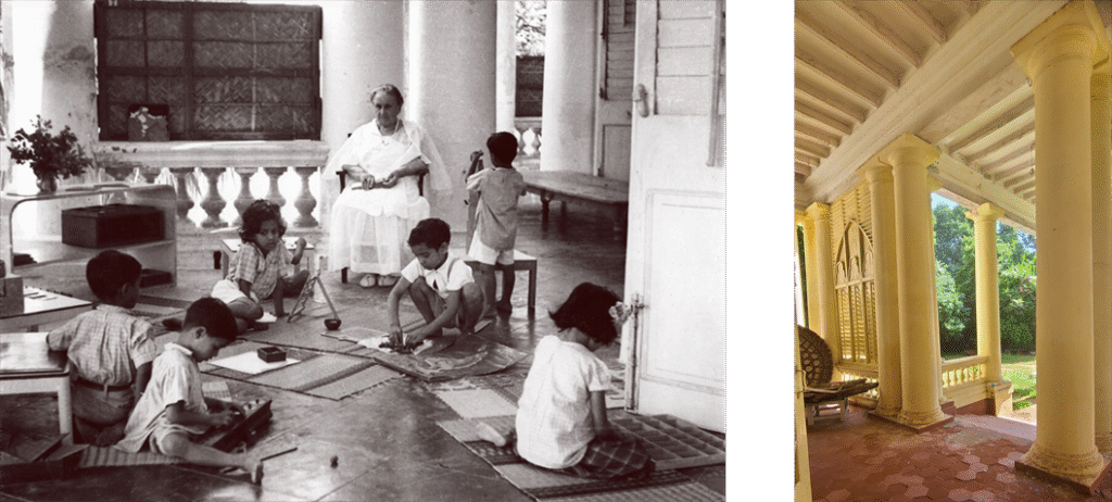 The Theosophical Society was founded in 1875 by Helena Blavatsky and Colonel Olcott, and its international headquarters was later established in Adyar in 1882. Its core idea, the unity of all life, shaped the thinking of many reformers of the time, including Annie Besant and Maria Montessori. When the war broke out in Europe in 1939, Montessori, then in India for a lecture tour, could not return home and found refuge here, in the Olcott Bungalow. She lived on the upper floor while the ground floor served as a classroom. It was there, within the grounds of this same Society, that she inaugurated her first training course in India and opened the Montessori school, beginning a decade of work that would transform education across the subcontinent, and deepen her vision of education.